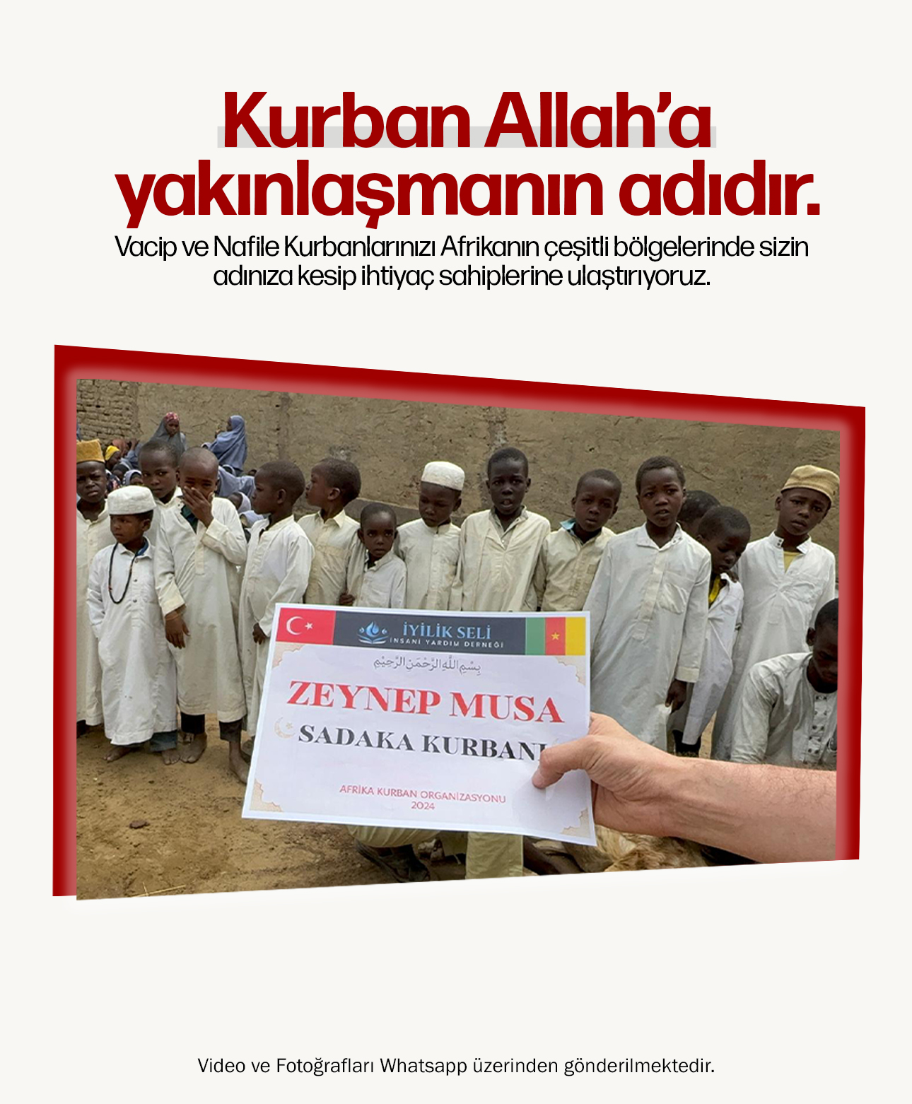 Vacip Kurbanlarınız ve diğer Nafile adaklarınız, özenli şekilde Afrikanın ihtiyaç sahibi köylerine kesilip, Müslüman kardeşlerimize dağıtılıyor ve Kurban kesim videosu whatsapp üzerinden sizlere gönderilmektedir. Duruma bağlı olarak 1-2 gün içerisinde video sizlere ulaştırılmaktadır. Kurban Bayramında yoğunluk sebebiyle videonuz 3-4 gün içerisinde sizleri gönderilmiş oluyor.